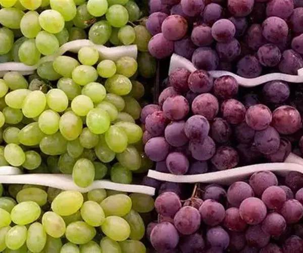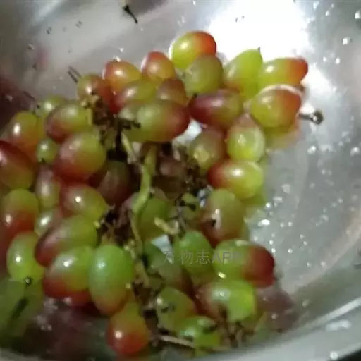 提子 穗形呈倒梯形,去除副穗,果粒较拥挤时,疏去部分果粒。