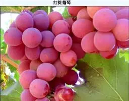 一个是果实鲜红色或鲜紫红色,有光泽,外观十分漂亮的红提子,名叫“红地球”,又叫“晚红”。幼叶浅紫色,叶面光滑,叶背有稀茸毛。成叶较大,心脏形,5 提子 裂,裂刻中等,叶面光滑有光泽,叶背无茸毛。两性花。果粒着生松紧适中。果穗一般重800克左右,最大穗重2500克。平均粒重13克,最大粒重25克。不裂果,不烂果,不落粒。果皮中等厚,难剥皮,含糖18-20度,鲜食味感清脆,甘甜口,不酸,不涩,口味极佳,耐贮耐运,自然存放能长达3个多月,恒温窑藏可贮至翌年的5月,先后贮存达8个多月。