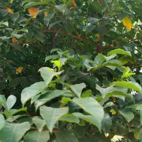 乔木,高可达17米,主干通直;树皮黑褐色,纵裂,叶互生,革质,长圆状椭圆形至倒卵椭圆形,长7-15厘米,宽3-7厘米,先端短尖或具短尾,基部楔形或近圆形,全缘或具不规则浅疏锯齿,表面深绿色,背面淡绿色,两面均无毛,侧脉6-10对,在表面微隆起,背面明显隆起,嫩叶干时黑色;叶柄长5-15毫米;托叶披针形,早落。