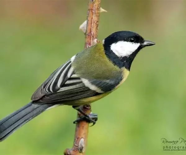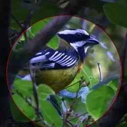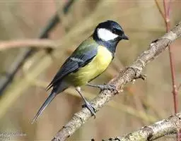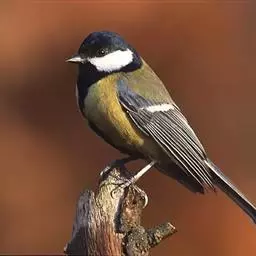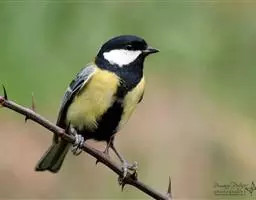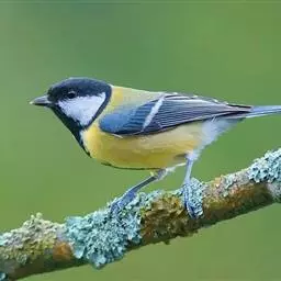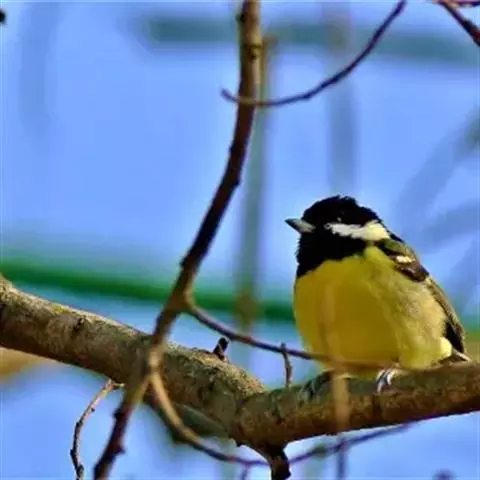 大山雀,英文名parus major,民间又叫“白脸山雀”、“吱吱嘿”、“吱啵”等。属鸟纲、雀形目、山雀科,体型与麻雀相似。头黑色,两侧具大形白斑;上体蓝灰,背沾绿色;腹面白色,中央贯以显著的黑色纵纹。鸣声的基调似“呼伯、呼伯”或“呼黑、呼黑”,易与其它鸟类区别。为林栖鸟类,通常栖息在山区阔叶林或针叶林间,夏季可见于海拔3000米左右的高山,冬时降至平原地带的林间,在耕作区或庭园中亦能经常见到是一种极常见到。