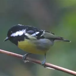 黄腹山雀是雀形目山雀科山雀属鸟类。虹膜褐色或暗褐色;嘴蓝黑色或灰蓝黑色;头、喉胸斑黑色,…