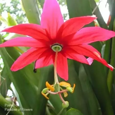 红花西番莲 是西番莲科、西番莲属多年生草质藤本,茎圆形,具卷须,长6-8米。叶互生,长圆形至长卵形,…