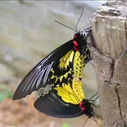 金裳凤蝶是凤蝶科、裳凤蝶属的动物。金裳凤蝶身体呈黑色,头、颈和胸侧有红毛,腹部有黑黄两色相间条纹,…