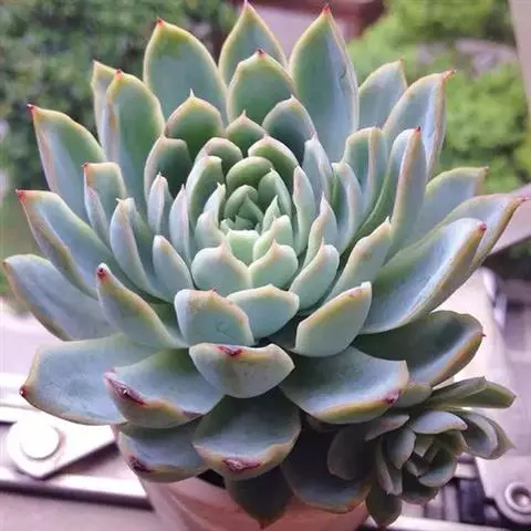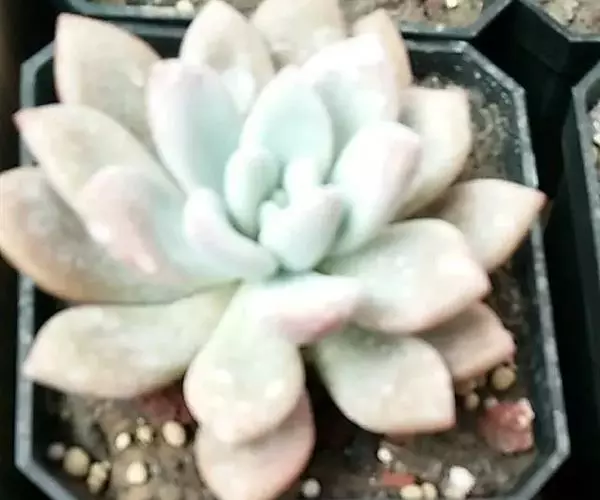 奥普琳娜 x Graptoveria ‘Opalina’ 为风车石莲属(Graptoveria )多肉植物,肉质叶互生,呈莲花状排列,整体颜色呈现粉粉的淡蓝色,叶缘和尖端容易泛红,非常漂亮,颇有古代美人的娇羞感。