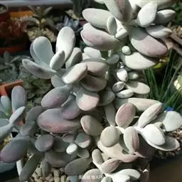 蓝黛莲是一种景天科厚叶草属植物。叶片呈略扁的圆柱形,排列成莲座状;颜色为灰绿色,…
