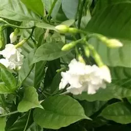 狗牙花 R. Br. ex Roem. & Schult.)是夹竹桃科山辣椒属灌木植物;枝灰绿色;叶椭圆形或椭圆状长圆形,叶面深绿色,背面淡绿色,叶面扁平;花聚伞花序腋生,通常双生,萼片长圆形,边缘有缘毛,花冠白色;果长圆形;花期六至十一月;果期秋季。狗牙花因其花冠裂片边缘有皱纹,状如狗牙,故名。狗牙花原产于印度及中国云南,在广西、广东、台湾及亚洲热带和亚热带等地区广泛栽培。狗牙花喜温暖湿润,不耐寒,宜半阴,对土壤要求不严,喜肥沃、排水良好的酸性土壤,常生长于山地灌木丛中。狗牙花的主要繁殖方式为扦插。狗牙花味酸、凉,有清热降压、解毒消肿的功效,可用于治疗咽喉肿痛,跌打损伤。狗牙花枝叶茂密,株型紧凑,花朵净白素丽,典雅朴质,盛花时十分美观,且花期长,具有一定观赏价值。狗牙花还有较高的经济价值,园林中应用极为普遍,可丛植于林缘、路