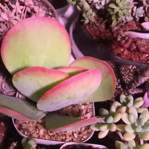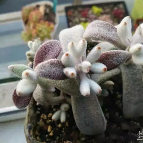 趣蝶莲,为景天科珈蓝菜属的植物。多年生常绿多肉草本。茎短;叶对生,卵圆形,先端圆,基部渐狭,近无柄,…
