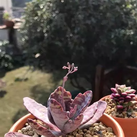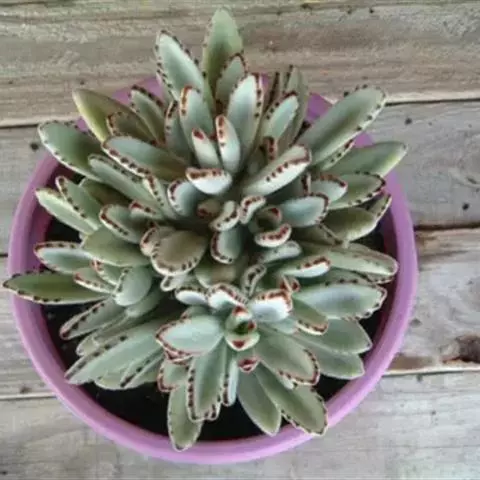江户紫,景天科伽蓝菜属草本植物,是多年生草本花卉。花白色,但栽培中很少能见到花,常作观叶植物栽培。…