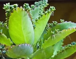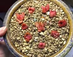 病、虫害及其防治:伽蓝菜属植物常见的虫害为根粉蚧、红蜘蛛和夜蛾类幼虫。根粉蚧主要为害幼苗根部,严重时导致植株萎缩死亡,可用 3%呋喃丹粉剂或 40%乐果乳油 2000 倍液进行防治;红蜘蛛喜吸食植株汁液,造成植株萎缩,可喷施螨类专杀药剂,如 20%三氯杀螨醇乳油 800~1000 倍液、15%哒螨灵 2000 倍液等;夜蛾幼虫则啃食植株生长点,造成植株破顶,对此可使用广谱性杀虫剂进行防治。植株在交易流通过程中很可能会感染病、虫害,故而在种植前,最好检查植株株体及根部是否带虫体或虫卵、或者有病害特征。如有发现,应及时清理,以防传染给其它植株。