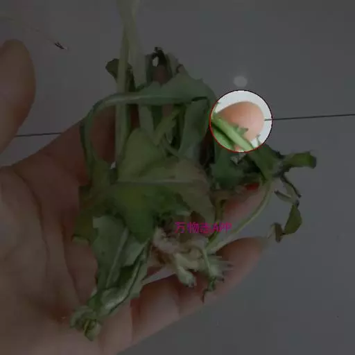 用手捏干水分放入碗中,蒜和干辣椒放在表面。