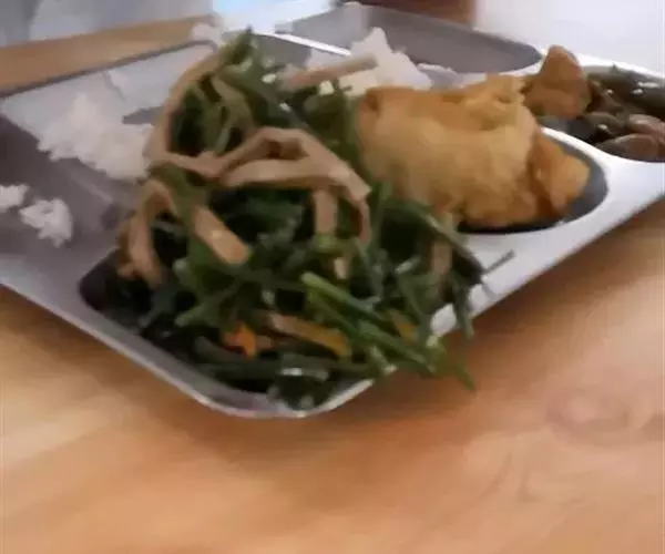 锅中放入少量油烧热泼在蒜和干辣椒上加入少量盐,糖和鸡精搅拌均匀盛出。