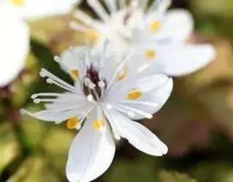 花序伞房状,有少数或多数花;花梗长0.5-2.5厘米;萼片4,白色,早落,卵形,长3-5毫米;雄蕊多数,长5-12毫米,花药狭长圆形,长0.7-1.5毫米,顶端钝,花丝上部倒披针形,比花药宽;心皮4-13,无柄,花柱短,腹面密生柱头组织。瘦果卵形,长4-6毫米,有8条纵肋,宿存花柱长约1毫米。6-7月开花。