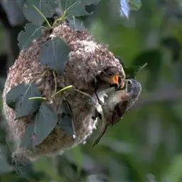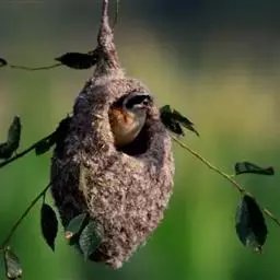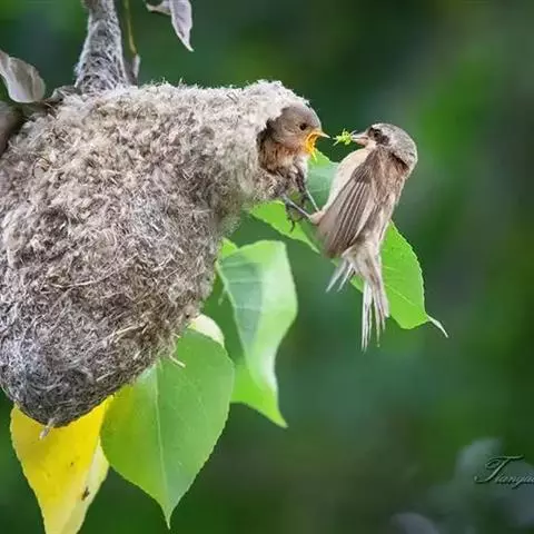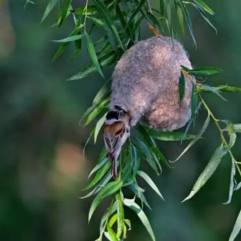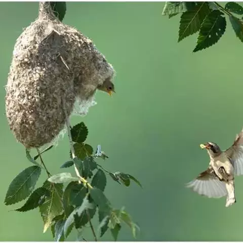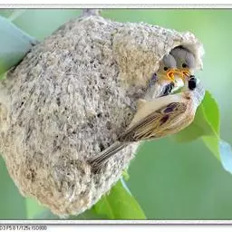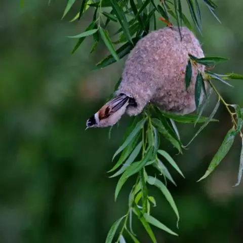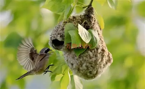 攀 白冠攀雀 雀的窝外观像个“靴子”,一般高挂在树的枝头掩蔽在浓荫之中。攀雀在整个筑巢过程中不断地用脚爪摁住羊毛绒絮,用嘴将其拉伸延长成长形的纤维……攀雀将羊毛拉长的纤维反复缠绕在树枝上固定整个巢,也将羊毛拉长的纤维反复缠绕在巢壁的外面,包裹里面的柳絮、花序以及羊毛。攀雀搜集众多的柳絮、花序以及羊毛增加巢壁的厚度,不光是为了保暖,也是为了增加巢的重量,不然的话稍许的风就会把巢吹得上下翻飞,住在里面的雏鸟每天都会在里面不停地翻跟头,攀雀的巢也有点像我们被子的棉胎:外面密密的线网包裹着厚实的棉花。