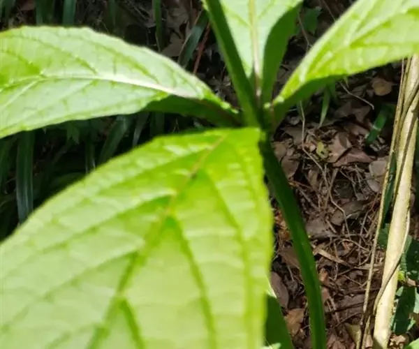 叶片椭圆状卵形或卵状披针形,长9-18厘米,宽5-10厘米,顶端急尖,基部楔形;叶柄长1-4厘米。