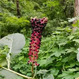 垂序商陆 多年生草本,高1-2米。根粗壮,肥大,倒圆锥形。茎直立,圆柱形,有时带紫红色。