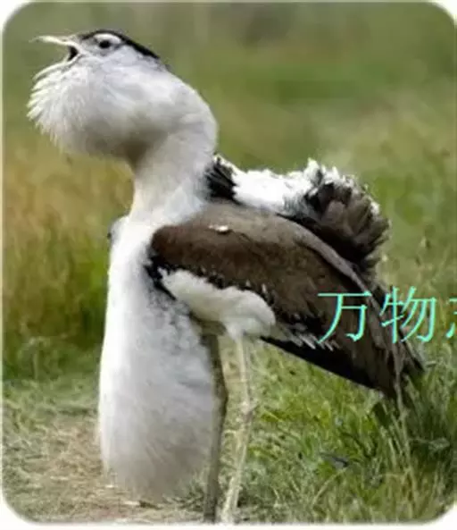 大鸨 鸨名来自这样一个传说:古时有一种鸟,它们成群生活在一起,每群的数量总是七十只,形成一个小家族,于是人们就把它的集群个数联系在一起,在鸟字左边加上一个“七十”字样,就构成了“鸨”。