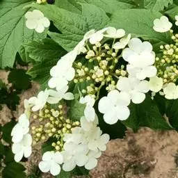 绣球荚蒾,五福花科荚蒾属落叶灌木,高可达3米,树冠球形;幼枝有垢屑状星状毛,老枝粗壮,具皮孔,…