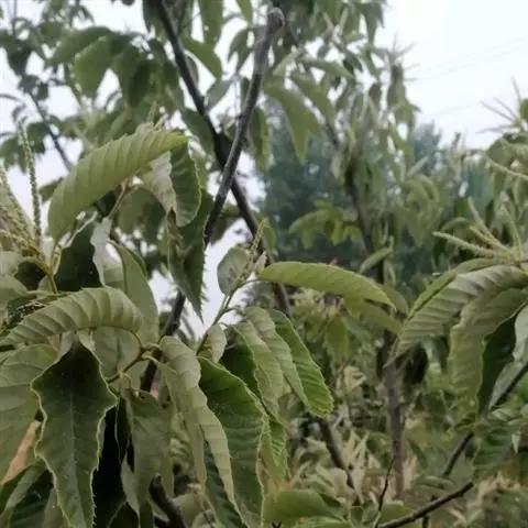 栗,壳斗科栗属落叶乔木植物,茎枝较粗,呈圆柱形;表面深绿色,有细纵纹和小绒毛;叶多卷曲,具短柄,…
