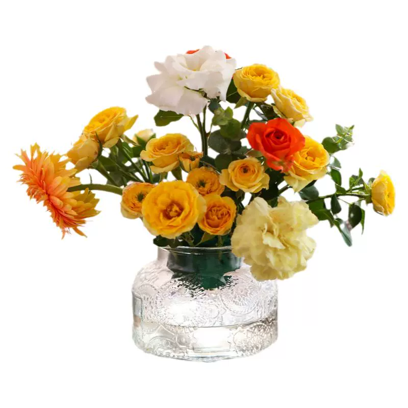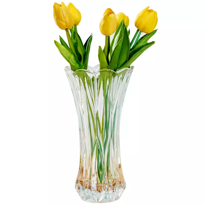 3、在色彩上,玻璃花瓶已一改透明晶莹的传统观感。含有钽的红色、含有钴的蓝色、含有铝的绿色、含有锰的紫色,不断使玻璃花瓶的色彩有了大的突破。另外,因色彩配方的不断调整,金黄色、紫红色、乳白色等也相继登场,五彩纷呈,形成了梦幻般的效果。这给量力而行,因地制宜挑选最佳花瓶留下了极大的回旋余地。