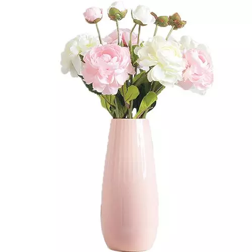 高温陶瓷花瓶是用陶烧制的,温度达到800度以上,有一定的硬度,声音清脆。高温陶瓷花瓶上面的图案是在上釉前手工钩绘,颜色是填上去的。高温陶瓷花瓶与中、低温陶瓷花瓶最明显的区别是吸水率,高温陶瓷花瓶的吸水率低于0.2%,产品易于清洁不会吸附异味,不会发生釉面的龟裂和局部漏水现象。中、低温陶瓷花瓶的吸水率大大高于这个标准。