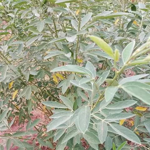 叶具小叶4-6片,托叶比小叶大,叶状,心形,下缘具细牙齿。小叶卵圆形,长2-5厘米,宽1-2.5厘米,全缘;托叶叶状,卵形,基部耳状包围叶柄。