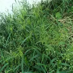 撒栽:撒栽是将甸甸茎或根茎撕开,用利刀切成2-3节,长为3-5厘米的小段,均匀铺撒在准备好的坪床上。撒播密度以草根相互搭接、覆盖地面为宜。后加盖一层细土、木屑、椰糠,不要让草根露出即可,接着滚压,使播种材料与土壤紧密接触,随即灌水,保持土壤湿润,半月左右可开始生长,四个月左右即形成90%的盖度的新草坪。