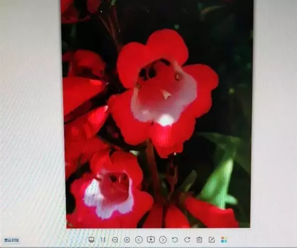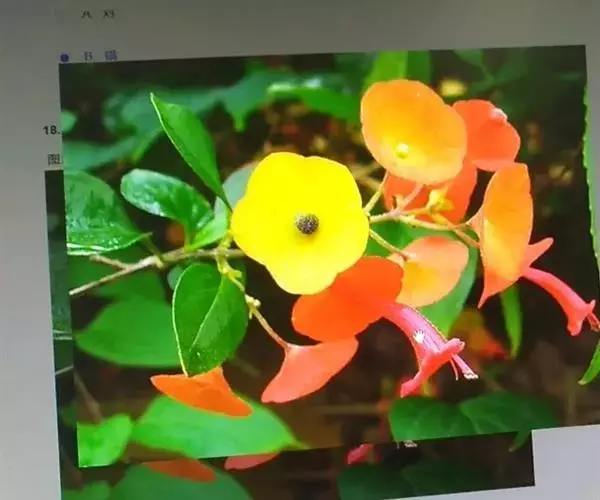 聚伞花序常2-6个再组成圆锥状,每聚伞花序有3花,中间的一朵花柄较两侧为长,花柄及花序梗具短腺毛及长单毛;花萼朱红色或橙红色,由基部向上扩张成一阔倒圆锥形的碟,直径可达2厘米,边缘有稀疏睫毛,网状脉明显;花冠殊红色,花冠管长2-2.5厘米,有腺点;雄蕊4,花丝长2.5-3厘米,具腺点。