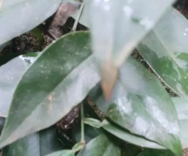 叶片纸质,鲜时表面深绿色,背面淡绿色,干后表面黄绿色,背面淡黄色,椭圆形,披针状卵形至披针状长圆形,长6-13厘米,宽1.5 5-5.6厘米,先端渐尖至长渐尖,常有芒状尖头,基部钝;中肋在表面稍下陷,背面隆起,侧脉4对,最下一对基出,弧形上升,细脉多数,近平行;叶柄倒卵状长圆形或楔形,长1-4厘米,宽0.5-1.2厘米,约为叶片大小的1/6。