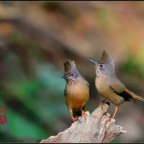 栗耳凤鹛,雌雄羽色相似。额、头顶至枕灰色,头顶有一短的不甚明显的羽冠,…