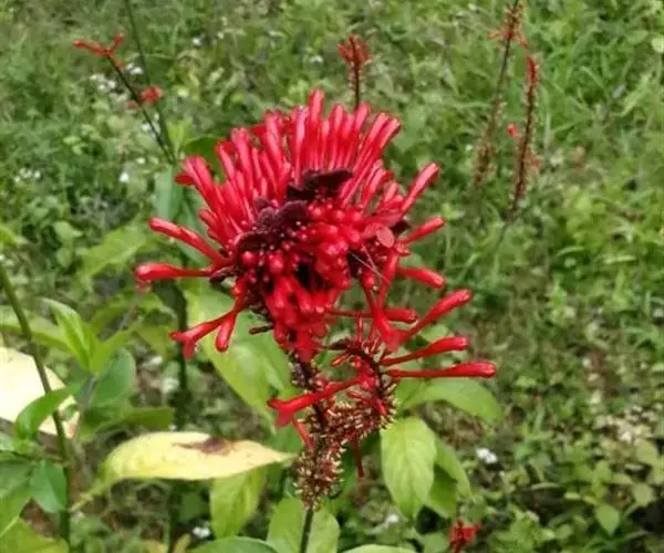 火焰花(学名:Phlogacanthus curviflorus (Wall.) Nees)是爵床科,火焰花属灌木,高可达3米。叶椭圆形至矩圆形,顶端尖至渐尖,基部宽楔形,叶片上面密生小点状钟乳体,光滑无毛,背面被微毛,聚伞圆锥花序穗状,顶生,花梗密被短绒毛;苞片和小苞片微小;裂片三角状披针形,密生微毛;花冠紫红色,花药背着生,蒴果长,圆柱形,有种子。花期4-5月。