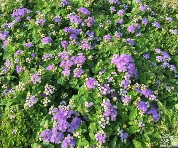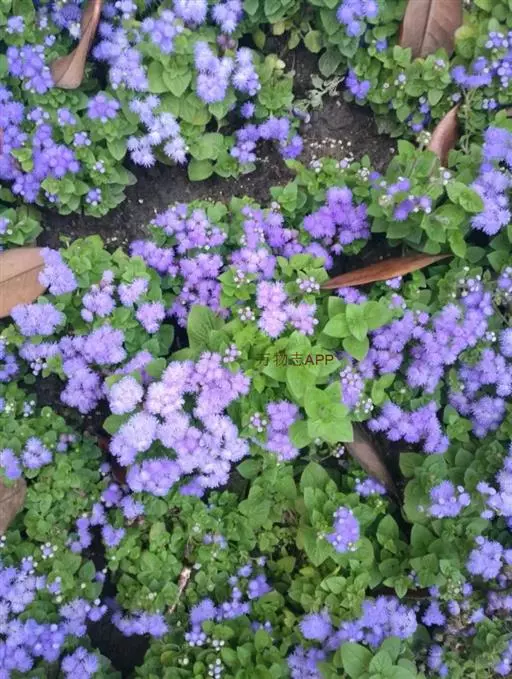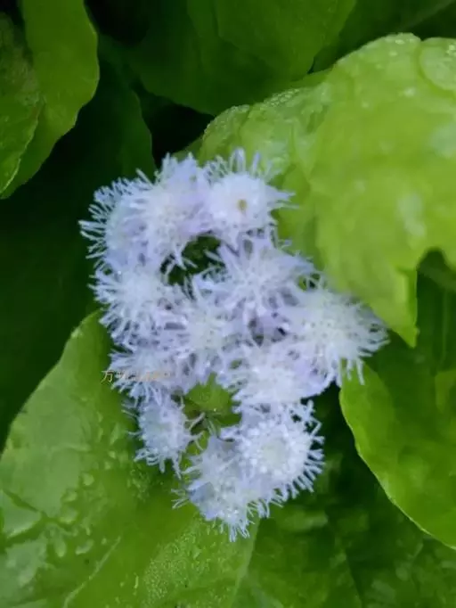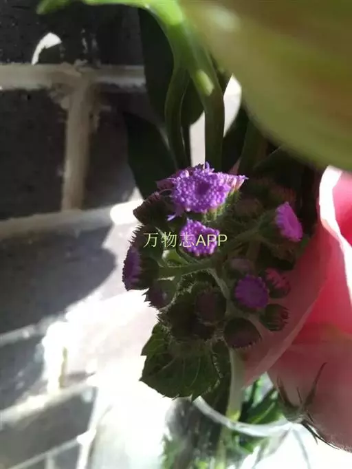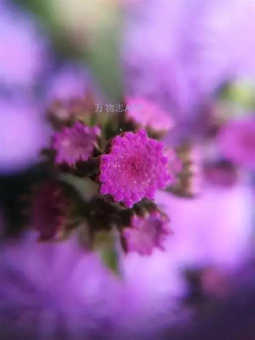 熊耳草(学名:Ageratum houstonianum Miller)菊科藿香蓟属植物,一年生草本,高30-70厘米或有时达1米,无明显主根,全部叶有叶柄,柄长0.7-3厘米,冠毛膜片状,5个,分离,膜片长圆形或披针形,顶端芒状长渐尖,有时冠毛膜片顶端截形,而无芒状渐尖,花果期全年。