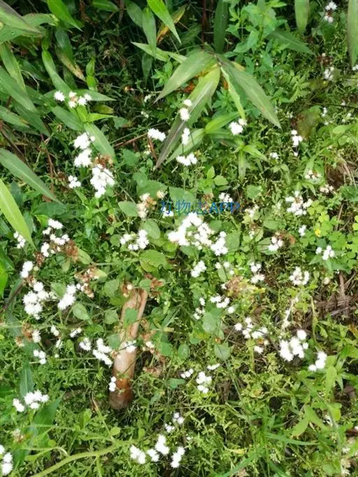 熊耳草的花 一年生草本,高30-70厘米或有时达1米。无明显主根。茎直立,不分枝,或自中上部或自下部分枝而分枝斜升,或下部茎枝平卧而节生不定根。茎基部径达6毫米。全部茎枝淡红色或绿色或麦秆黄色,被白色绒毛或薄棉毛,茎枝上部及腋生小枝上的毛常稠密,开展。