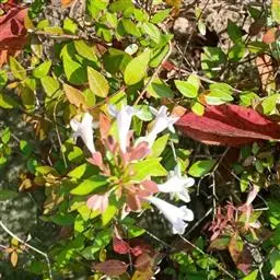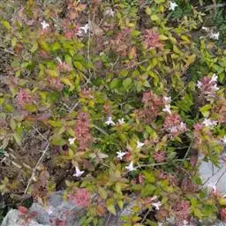 六道木(学名:Abelia biflora Turcz.)是忍冬科、六道木属落叶灌木,高可达3米;叶片矩圆形至矩圆状披针形,顶端尖至渐尖,基部钝至渐狭成楔形,上面深绿色,下面绿白色,边缘有睫毛;叶柄被硬毛。花单生于小枝上叶腋,无总花梗;花梗被硬毛;小苞片三齿状,花后不落;萼筒圆柱形,疏生短硬毛,萼齿狭椭圆形或倒卵状矩圆形,花冠白色、淡黄色或带浅红色,裂片圆形,花药长卵圆形;果实具硬毛,种子圆柱形,早春开花,8-9月结果。
