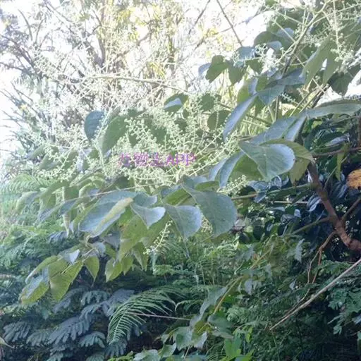 黄毛楤木 灌木,高1-5米;茎皮灰色,有纵纹和裂隙;新枝密生黄棕色绒毛,有刺;刺短而直,基部稍膨大。叶为二回羽状复叶,长达1.2米;叶柄粗壮,长20-40厘米,疏生细刺和黄棕色绒毛;托叶和叶柄基部合生,先端离生部分锥形,外面密生锈色绒毛;叶轴和羽片轴密生黄棕色绒毛;羽片有小叶7-13,基部有小叶1对;小叶片革质,卵形至长圆状卵形,长7-14厘米,宽4-10厘米,先端渐尖或尾尖,基部圆形,稀近心形,上面密生黄棕色绒毛,下面毛更密,边缘有细尖锯齿,侧脉6-8对,两面明显,网脉不明显;小叶无柄或有长达5毫米的柄,顶生小叶柄长达5厘米。圆锥花序大;分枝长达60厘米,密生黄棕色绒毛,疏生细刺;伞形花序直径约2.5厘米,有花30-50朵;总花梗长2-4厘米;苞片线形,长0.8-1.5厘米,外面密生绒毛;花梗长0.8-1.5厘米,密生细毛;小苞片长3-4毫米,宿存;花淡绿白色;萼无毛,长约2毫米,边缘有5小齿;花瓣卵状三角形,长约2毫米;雄蕊5,花药白色,花丝长2.5-3毫米;子房5室;花柱5,基部合生,上部离生。果实球形,黑色,有5稜,直径约4毫米。花期10月至次年1月,果期12月至次年2月。