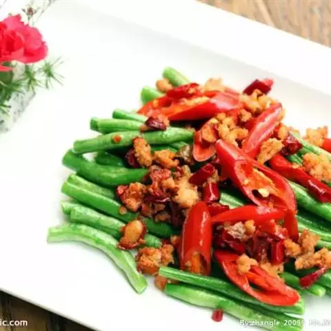 干煸四季豆是一道特色传统菜肴,属于川菜菜系,主要制作材料有四季豆、猪肉、红干辣椒等。干煸四季豆口味…
