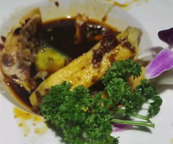 口水鸡是四川省的一道传统名菜,属于川菜,该菜品佐料丰富,集麻辣鲜香嫩爽于一身。 在烹制时,煮鸡用的汤料很有讲究,需要恰到好处,这样可以最大限度地保存鸡的可溶性蛋白,增加鸡肉的鲜美程度,又能具备其特有的香型和滋味。