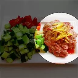 16.肉切成大小合适的块,码放在碗里。