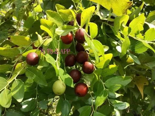 酸枣:落叶灌木或小乔木,高1-4米;小枝称之字形弯曲,紫褐色。酸枣树上的托叶刺有2种,一种直伸,长达3厘米,另一种常弯曲。叶互生,叶片椭圆形至卵状披针形,长1.5-3.5厘米,宽0.6-1.2厘米,边缘有细锯齿,基部3出脉。花黄绿色, 2-3朵簇生于叶腋。核果小,近球形或短矩圆形,熟时红褐色,近球形或长圆形,长0.7-1.2厘米,味酸,核两端钝。花期6-7月,果期8-9月。