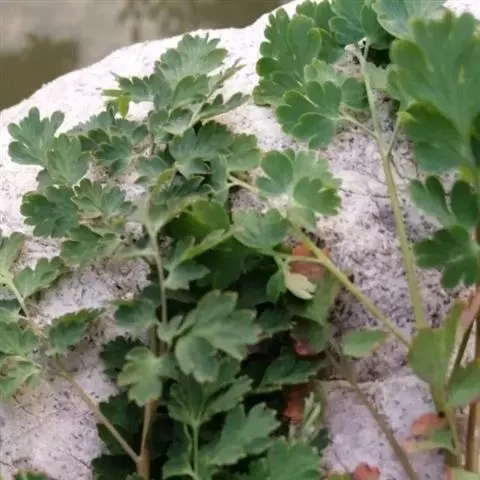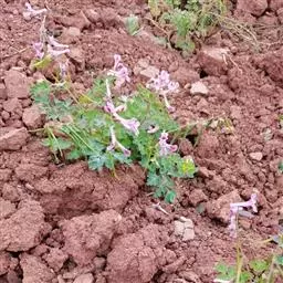 土元胡 瘦弱多年生草本,高9-20厘米。块茎球形,直径约6-8毫米。茎纤细,基部以上具1鳞片,鳞片腋内常具1-3分枝,叶生于鳞片以上,有时少数生于鳞片腋内,下部的茎生叶腋常具退化的腋生小叶。叶二回三出,具长的叶柄和小叶柄,小叶椭圆形,全缘,有时深裂成倒卵形的裂片,下部苍白色,约长8-14毫米,宽4-12毫米。