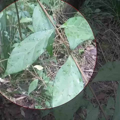 藤本或蔓性灌木,长可达10米;老枝棕褐色,圆柱形,无毛,幼枝、叶柄和花序梗被黄,褐色星状毛和分枝茸毛。叶片宽椭圆形或宽卵形,长6-11厘米,宽3-7厘米,顶端急尖至渐尖,基部宽楔形或浑圆,全缘,表面深绿色,初时有短硬毛和星状毛,稍粗糙,以后逐渐脱落,背面被黄褐色星状毛和细小黄色腺点,侧脉6-9对,主脉、侧脉和细脉在背面均隆起;叶柄长1-2厘米。聚伞花序宽6-9厘米,6-8次分歧,花序梗长2-5厘米,花柄无毛,长约1.5毫米;苞片线形;花萼无毛,有细小黄色腺点,萼齿不明显或近截头状;花冠紫红色至蓝紫色,长约2.5毫米;雄蕊长约5毫米,花药细小,长约0.6毫米,药室纵裂;子房无毛。果实紫色,径约2毫米。花期5-7月,果期8-11月。