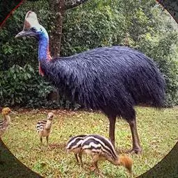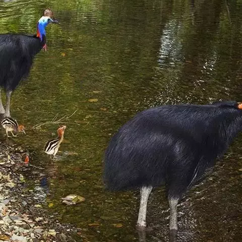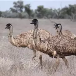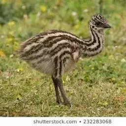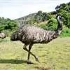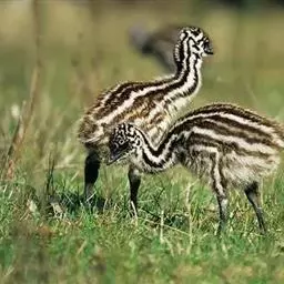 鸸鹋喜爱生活在草原、森林和沙漠地带,全身披着褐色的羽毛,擅长奔跑,时速可达70千米,并可连续飞跑上百公里之遥。鸸鹋虽有双翅,但同鸵鸟一样已完全退化,无法飞翔。躯干、翼被覆纤细的粗发状羽毛,呈灰褐色。以野草、种子、果实等植物及昆虫、蜥蜴等小动物为食。它能泅水,可以从容渡过宽阔湍急的河流。