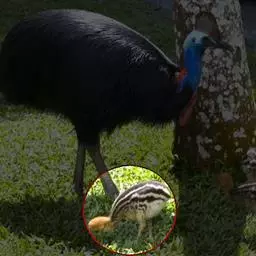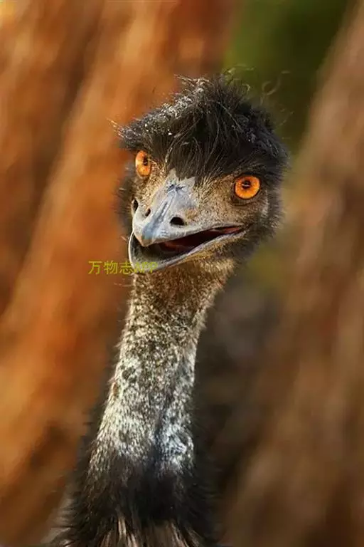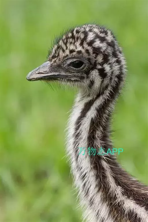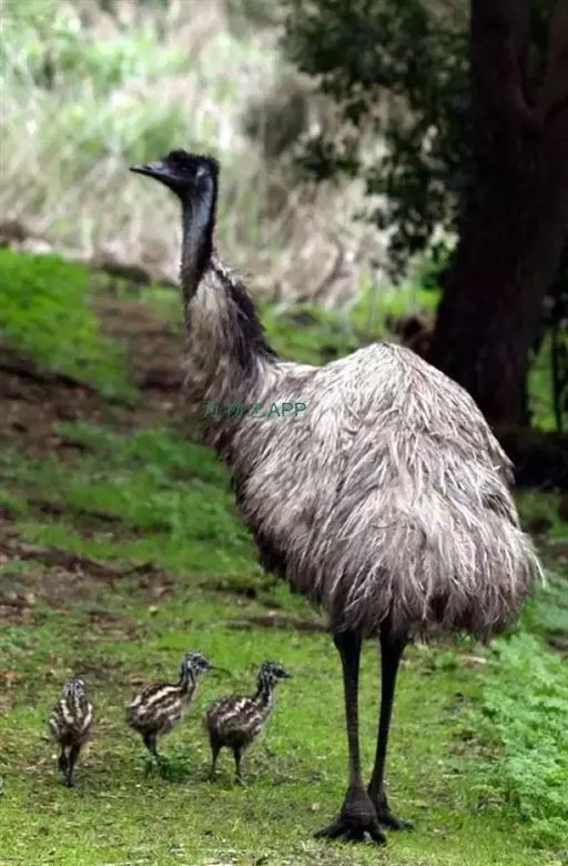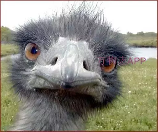 鸸鹋 [ér miáo](学名:Dromaius novaehollandiae):是鸟纲鸸鹋科唯一物种,体高150-185厘米,体重30-45千克,寿命10年。以擅长奔跑而著名,是大洋洲的特产,是世界上第二大的鸟类,仅次于非洲鸵鸟,因此也被称作澳洲鸵鸟。成年雌性比雄性大。鸸鹋形似非洲鸵鸟而较小,属于平胸类,没有龙骨,嘴短而扁,羽毛灰色、褐色或黑色,长而卷曲自颈部向身体的两侧覆盖。翅膀退化,完全无法飞翔。翅膀比非洲鸵鸟和美洲鸵鸟的更加退化,足三趾,是世界上最古老的鸟种之一。
