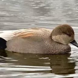 赤膀鸭,是雁形目鸭科鸭属中型游禽。雄鸟嘴黑色,脚橙黄色。头侧及头上部浅白色,满杂以褐色斑点,…