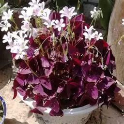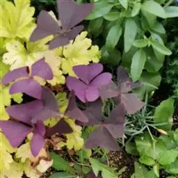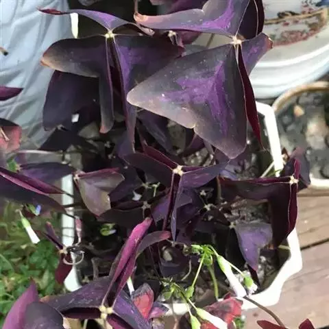 多年生草本,地下块茎粗大。叶丛生,具长柄,掌状复叶,小叶 3枚,无柄,倒三角形,深紫色。紫叶酢浆草…