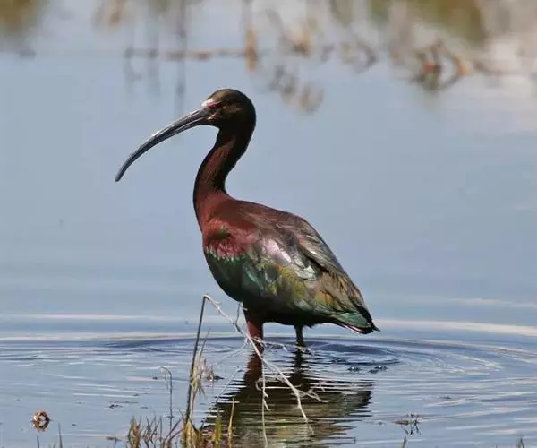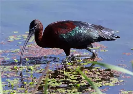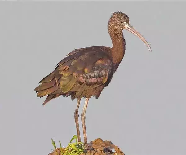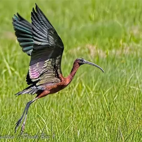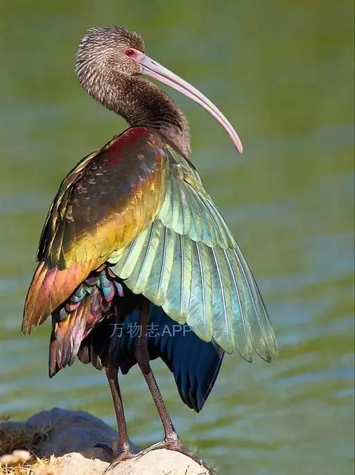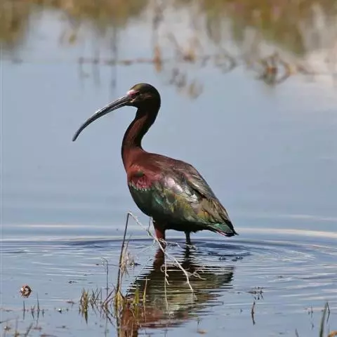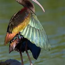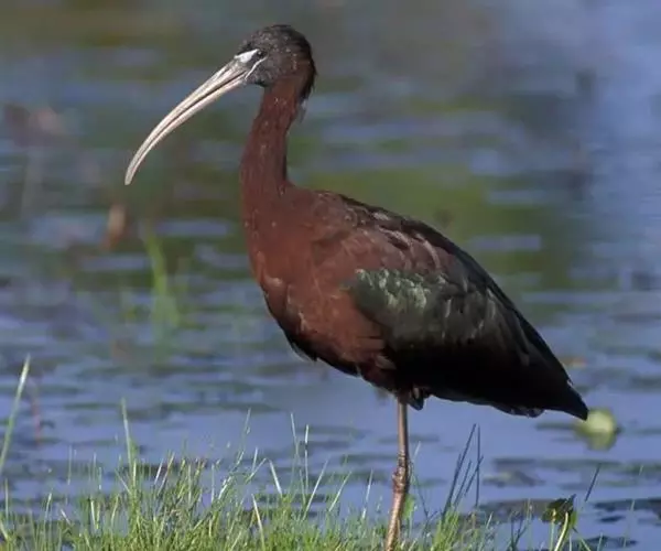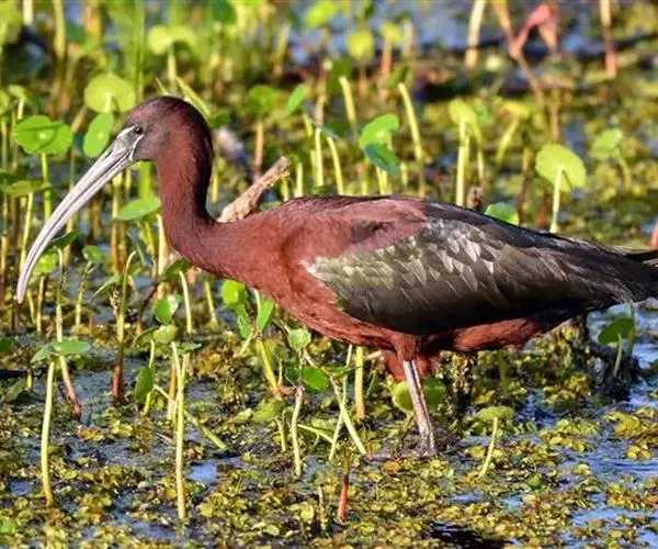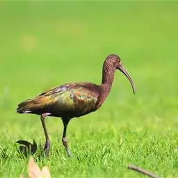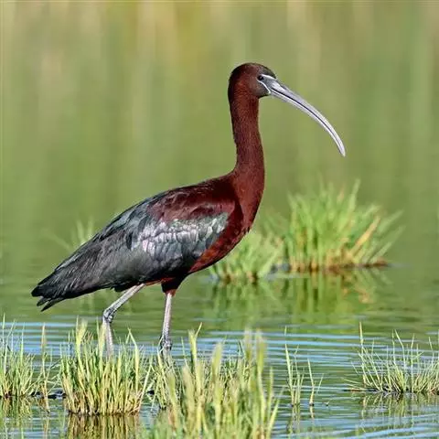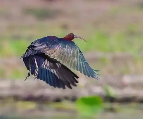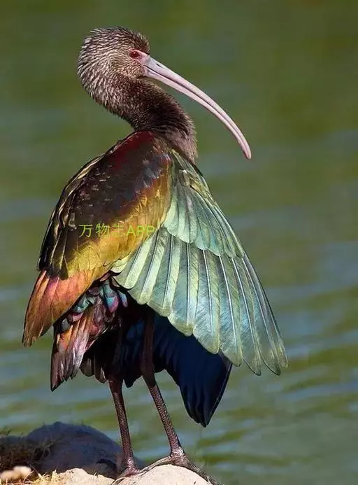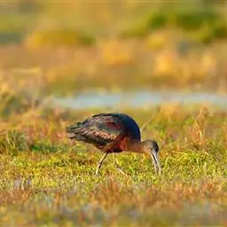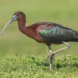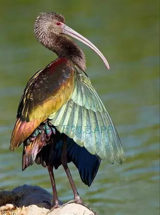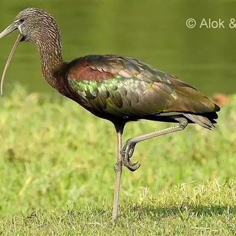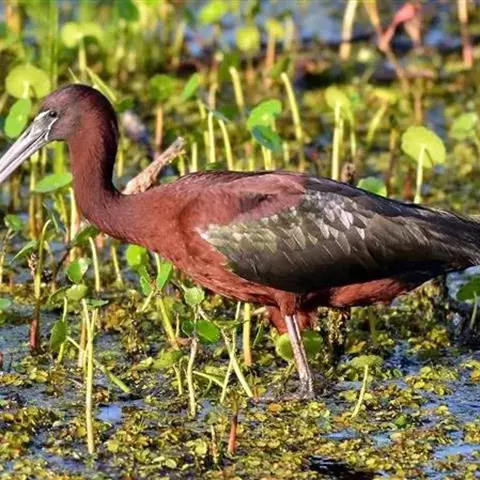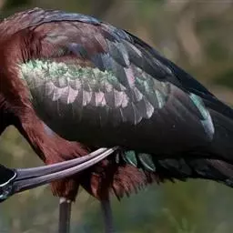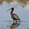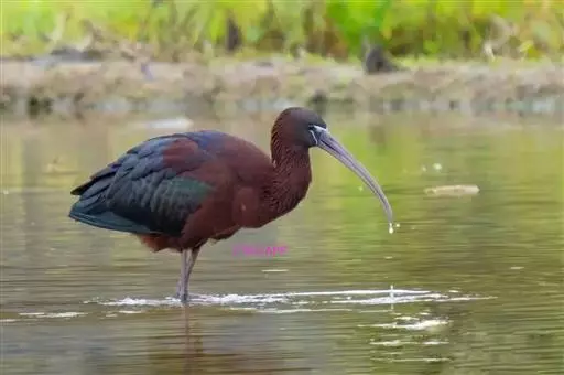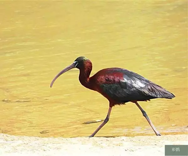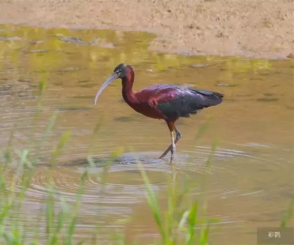 彩鹮(学名:Plegadis falcinellus):是鸟纲、鹮科、彩鹮属的鸟类。体长48-66厘米,翼展80-95厘米,体重485-580克。 是深栗色带闪光的鹮,看似大型的深色杓鹬,上体具绿色及紫色光泽;虹膜褐色;嘴近黑色;脚绿褐色;脸部裸露,裸皮及眼圈铅色;颈、上背、肩和最内侧翼上覆羽色深。头部除面部裸出外皆被羽,体羽大部为青铜栗色。叫声是带鼻音的咕哝声,于巢区发出咩咩及咕咕的叫声。