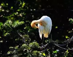 巢的大小为直径30-40厘米,高4-27厘米。营巢由雄鸟和雌鸟共同承担,通常雄鸟运送巢材,雌鸟留在巢上筑巢和看守巢,以防别的鸟类偷走巢材。每窝产卵3-5枚,通常4枚,偶尔有少至2枚和多至6枚的。卵的形状为卵圆形,颜色为蓝色,大小平均为53毫米×36毫米,重31-39克。在同一群体中营巢产卵的时间并不同步,繁殖期可以持续到5周以上或者更长,也时常发现有重新营巢的。