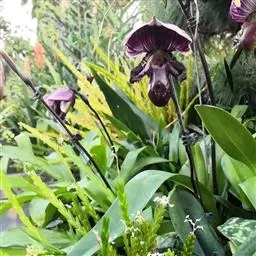 兜兰又名拖鞋兰,夏秋或临冬开花,花期最长达70余天。西南地区的兜兰叶片通常要厚实硬朗些,花色更为亮丽显眼,有更好的抗旱保水机制,在抗逆性新品种选育上具有非常高的利用价值。