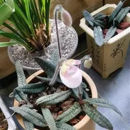 兜兰是兰科兜兰属的多年生草本植物。根茎粗状,直径3~4毫米,有很多须根;叶基生,叶片肉质增厚,…