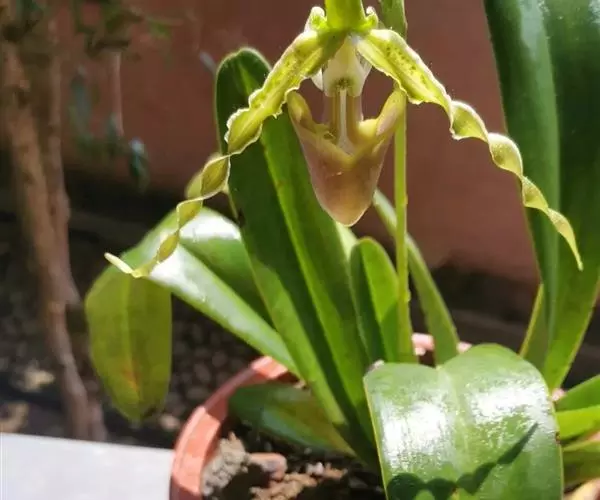 长瓣兜兰(学名:Paphiopedilum concolor)兰科,兜兰属附生植物。叶基生;数枚至多枚,叶片带形、革质。花葶从叶丛中长出,花苞片非叶状;子房顶端常收狭成喙状;花大而艳丽,有种种色泽;中萼直立,花粉粉质或带粘性,退化雄蕊扁平;柱头肥厚,下弯,柱头面有乳突,果实为蒴果。7-9月开花,11月结果。