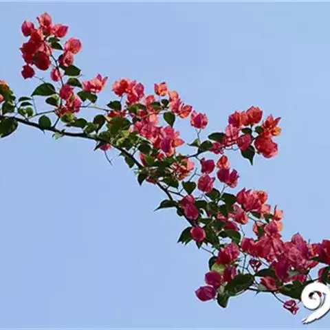 光叶子花,别名:宝巾、簕杜鹃、小叶九重葛、三角花、紫三角、紫亚兰、三角梅,拉丁学名:Bougainvillea glabraChoisy.紫茉莉科、叶子花属藤状灌木。茎粗壮,枝下垂,无毛或疏生柔毛;刺腋生,长5-15毫米。叶片纸质,卵形或卵状披针形,喜温暖湿润气候,不耐寒,喜充足光照。品种多样,植株适应性强,不仅在南方地区广泛分布,在寒冷的北方也可栽培。原产巴西。我国南方栽植于庭院、公园,北方栽培于温室,是美丽的观赏植物。花入药,调和气血,治白带、调经。